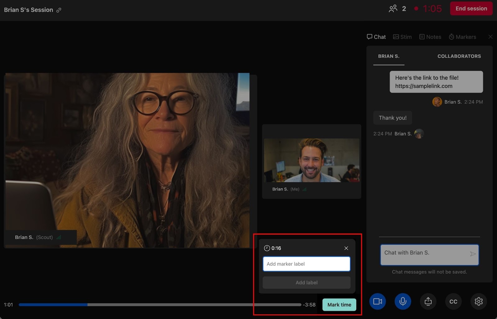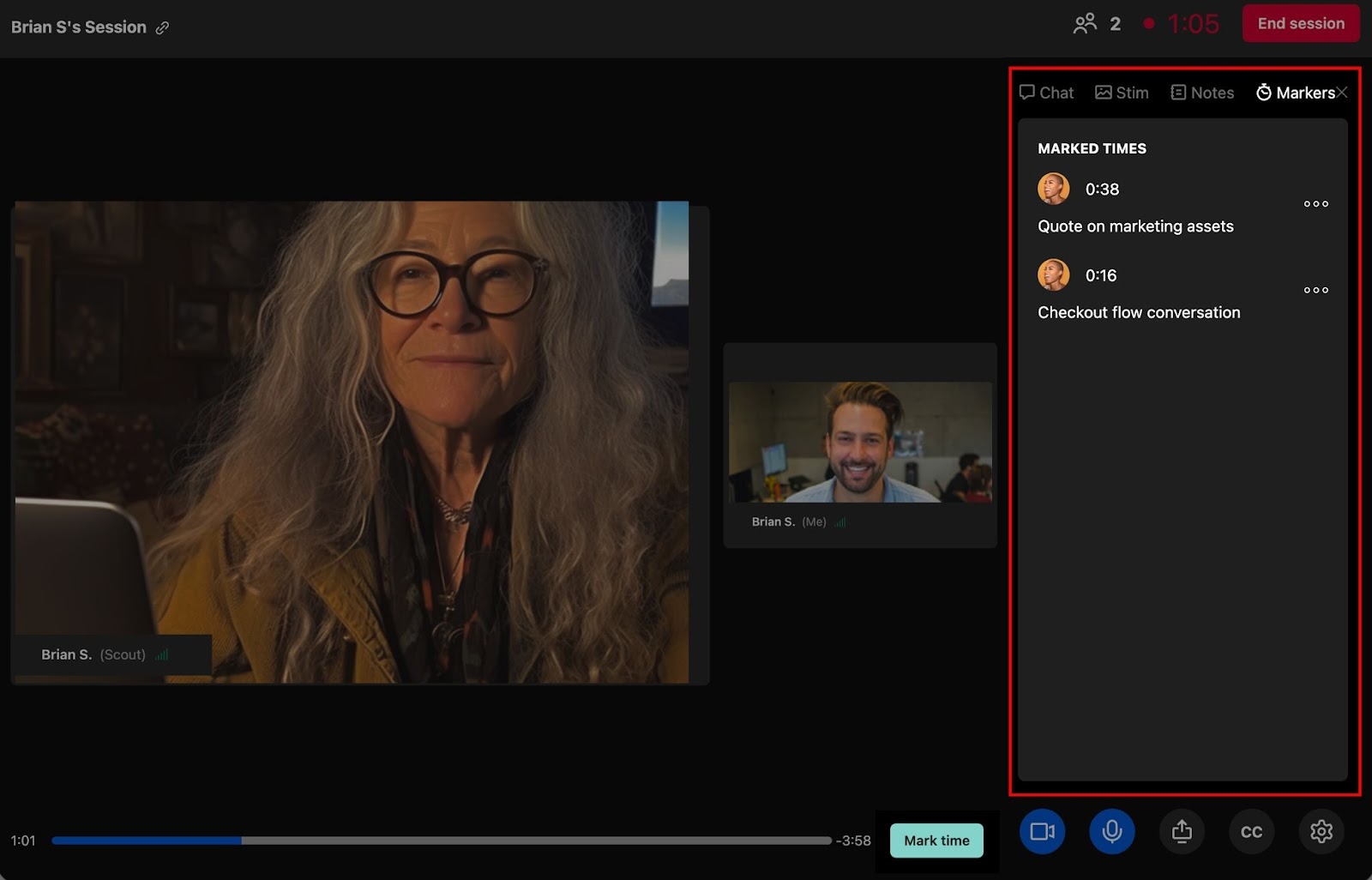 Note: Session moderators and observers can create markers. When viewing markers, you’ll be able to see who created them.