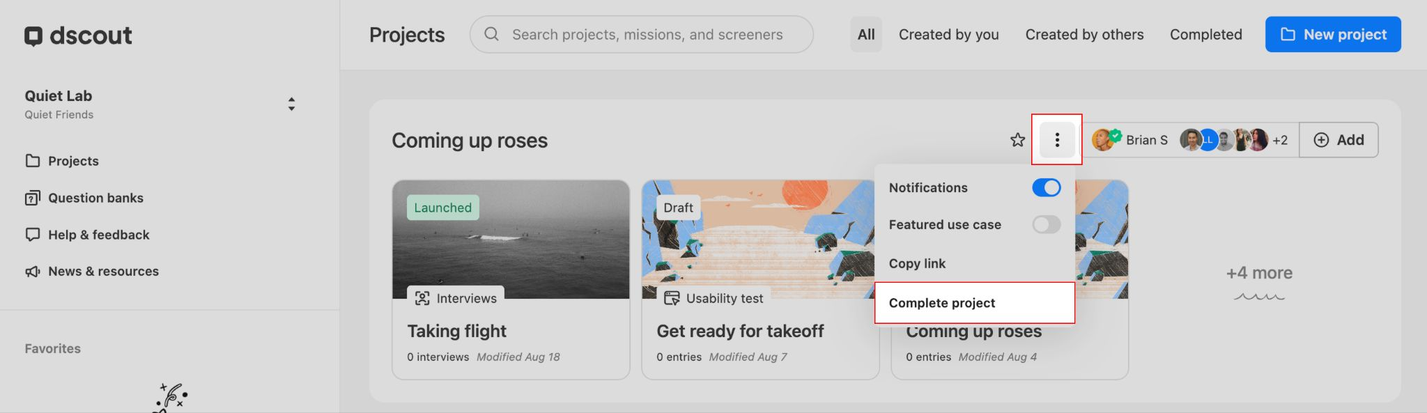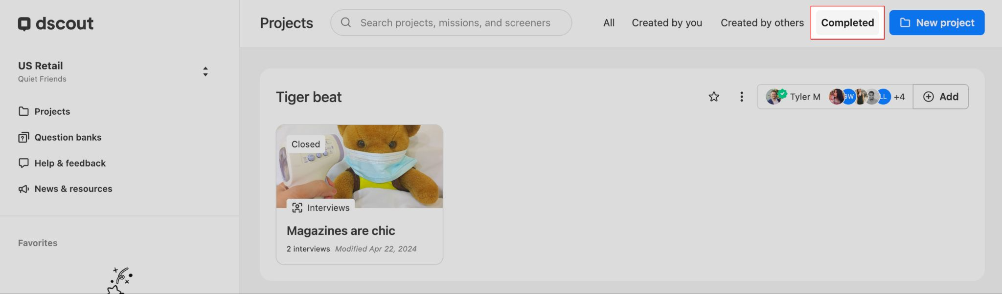 Now, any open missions or screeners in your project are closed and the project is moved to the Completed view of your Dscout account.