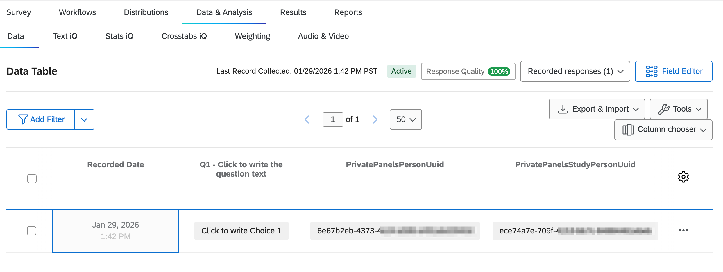 When a respondent completes a Qualtrics survey, Private Panels will automatically update the respondent participation on the Study Overview page. We do not yet show Qualtrics survey answers within Private Panels.