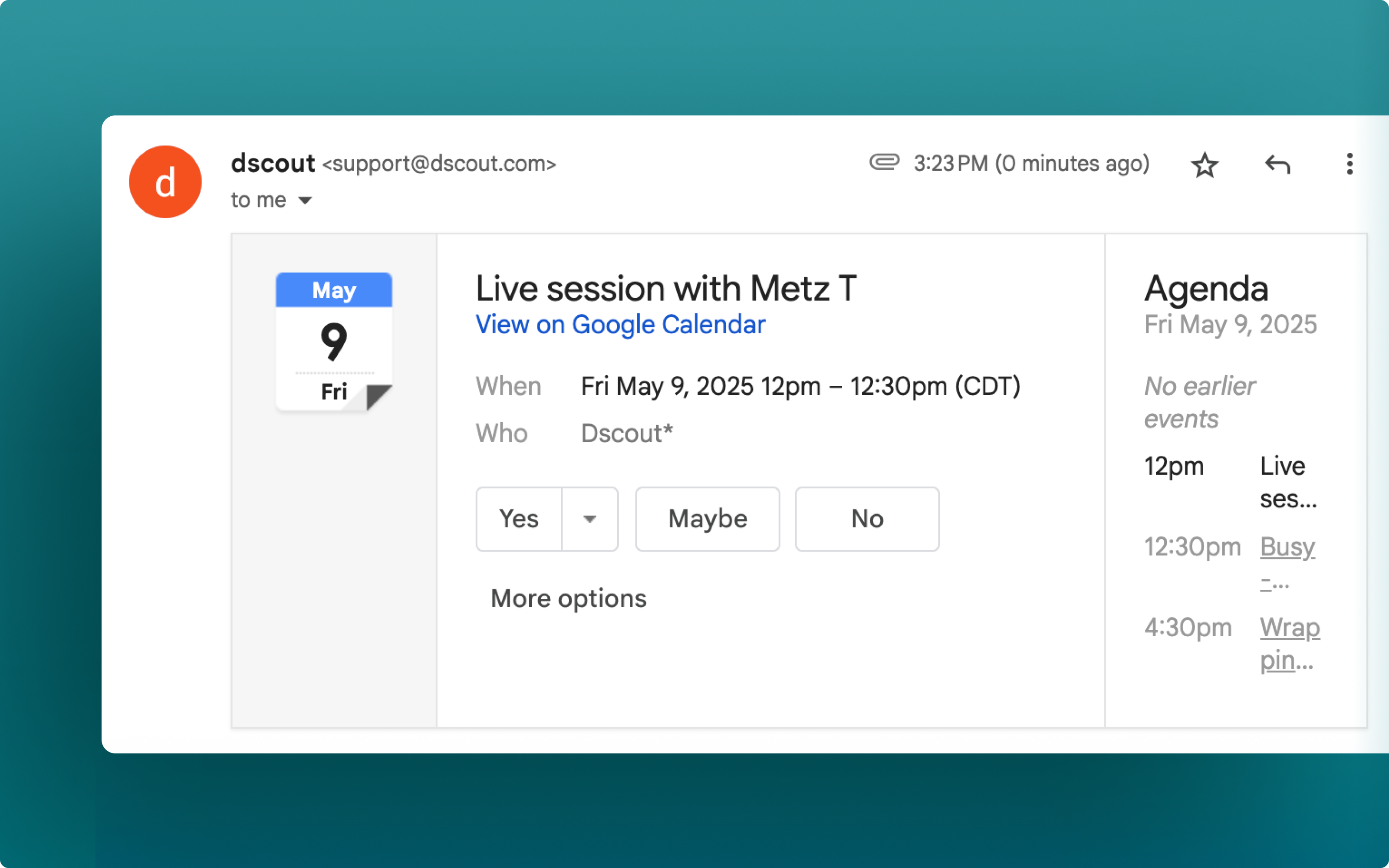 Your session emails now include a direct link to join, making it easy for you and your participants. You’ll also see a Google Calendar or Outlook invite right in the email, so adding it to your calendar is just a click away.