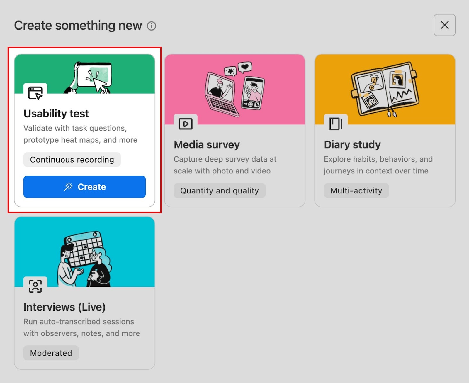If you want to create a new usability test from scratch—or if you’re building one for the first time—you’ll do so from within your Dscout project.