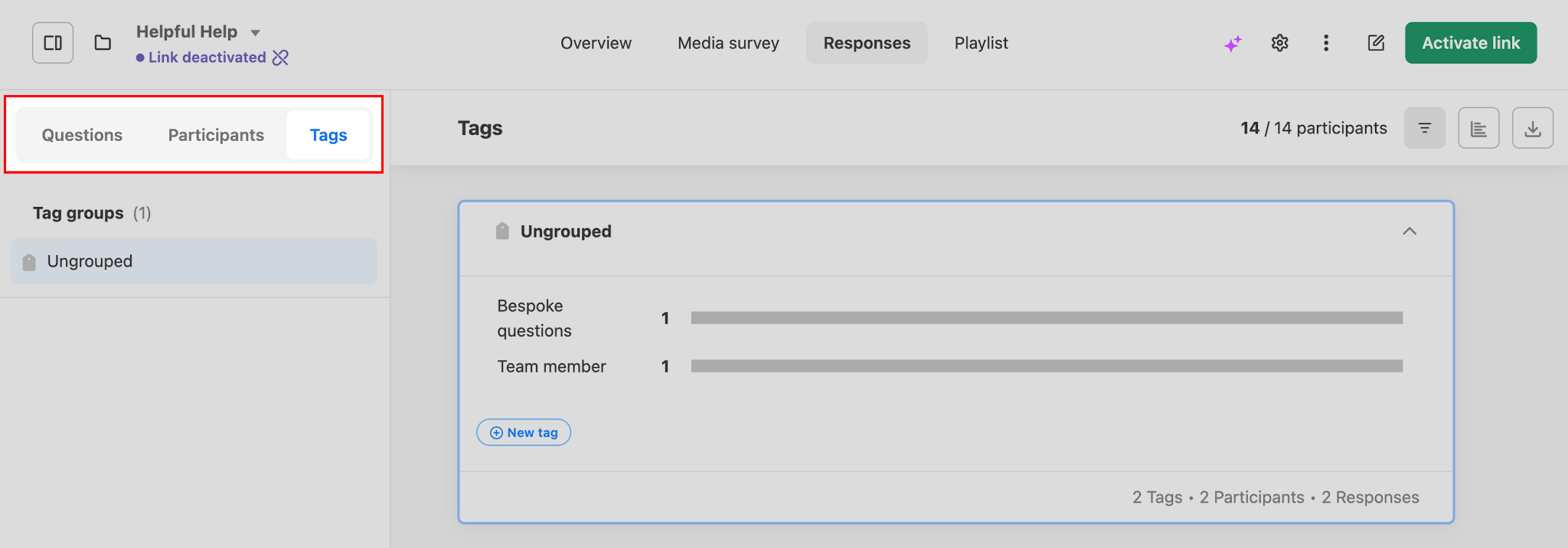 To view responses organized by your custom tags, open the Tags tab in the left sidebar: