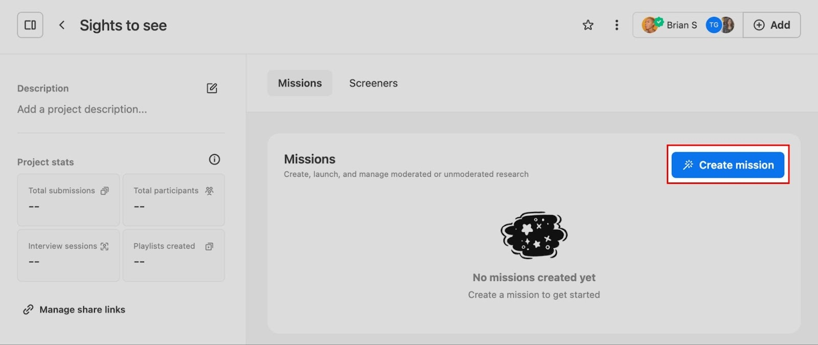 Note: This title will be visible to participants, so choose one that is representative of the mission but doesn’t give away your research objectives. To add a private title, click Add an internal mission name.