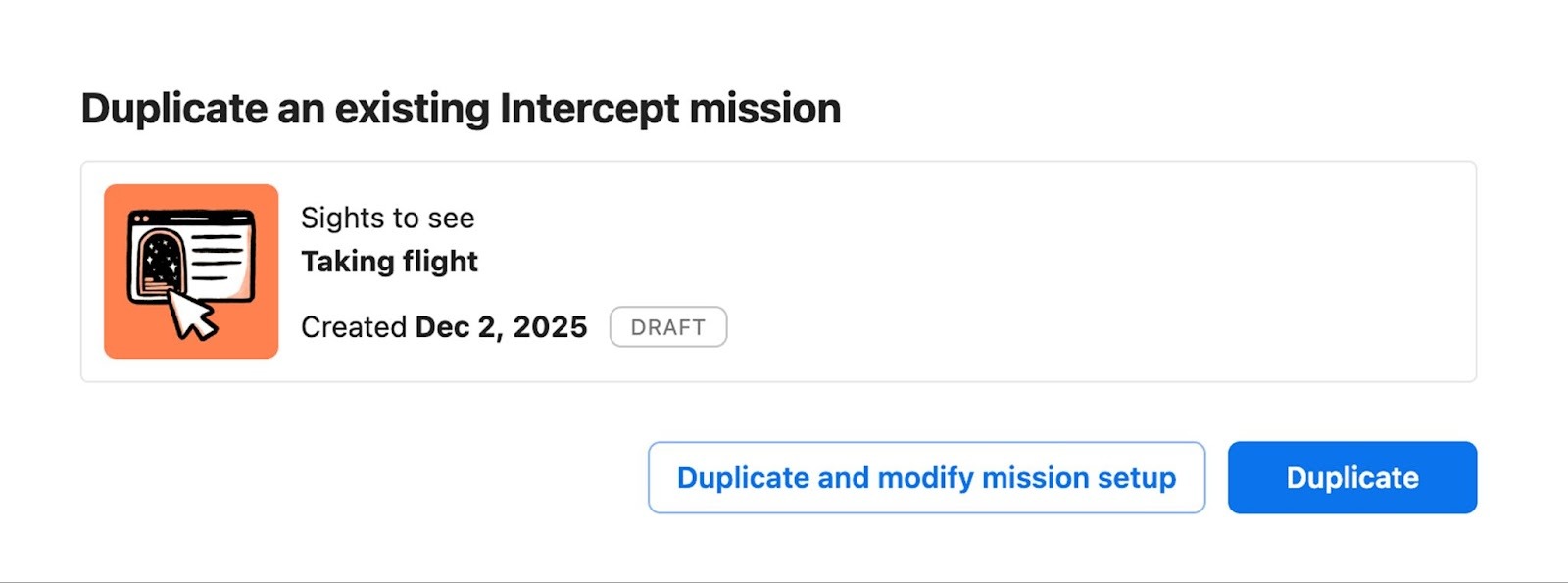 Now, your mission has been duplicated. You can give it a new name in the top left corner, adjust your questions on the Intercept or Mission tabs, or launch it to start gathering insights.