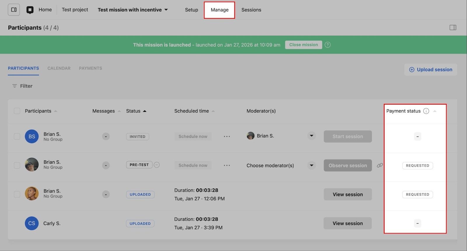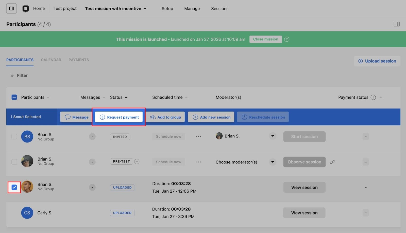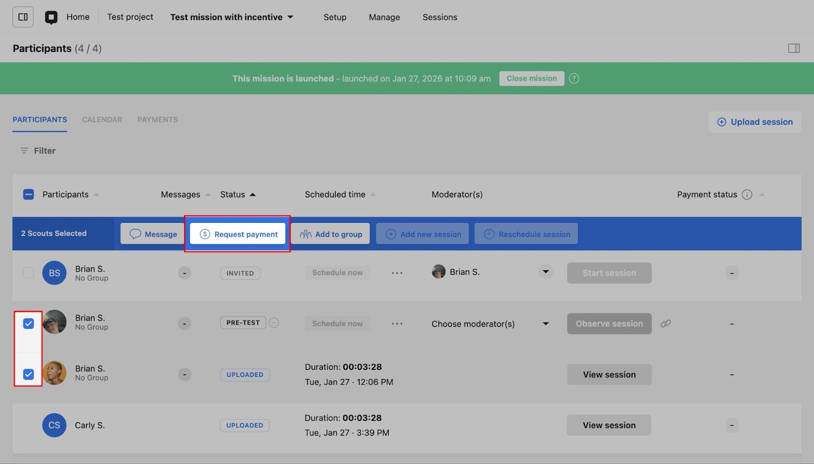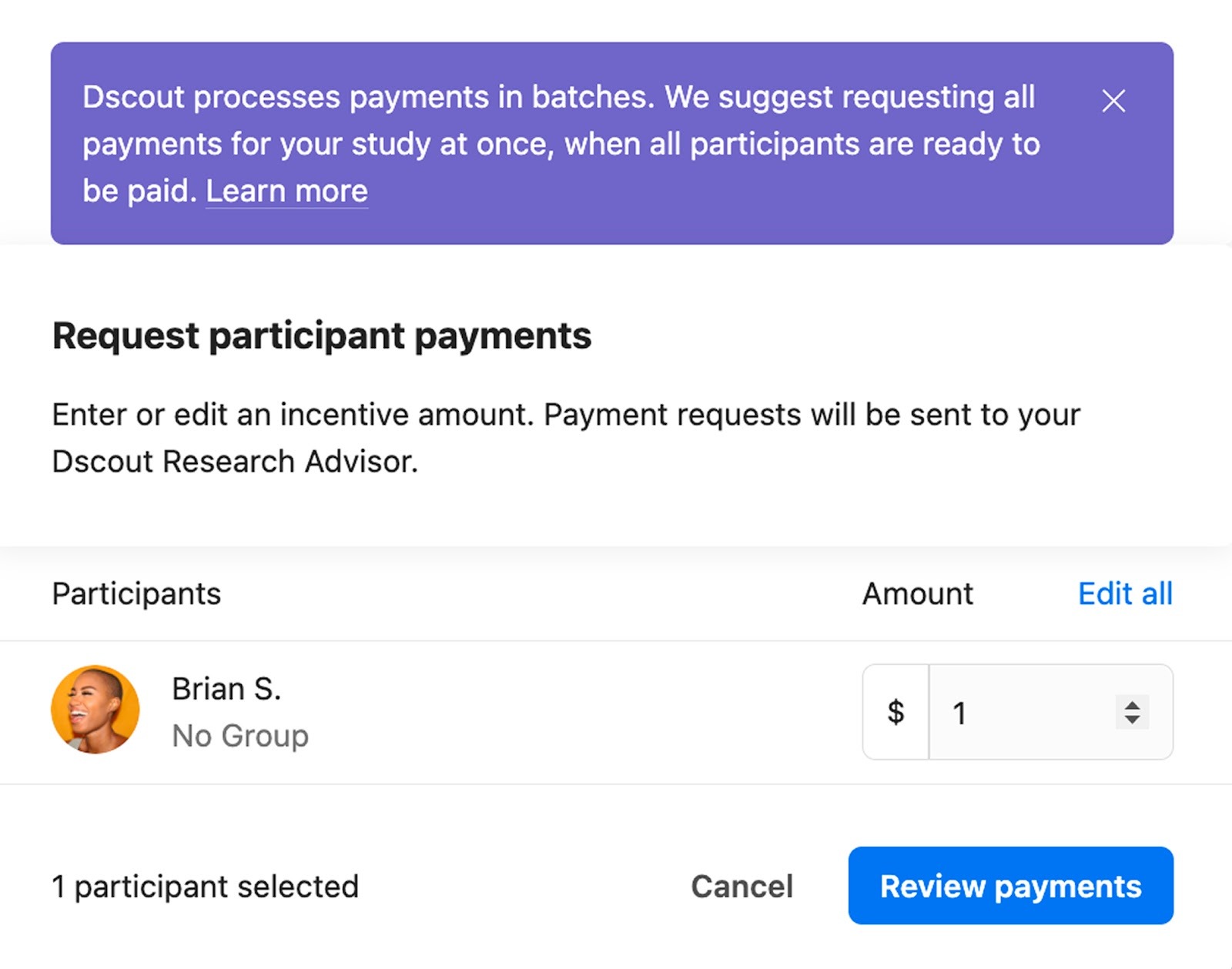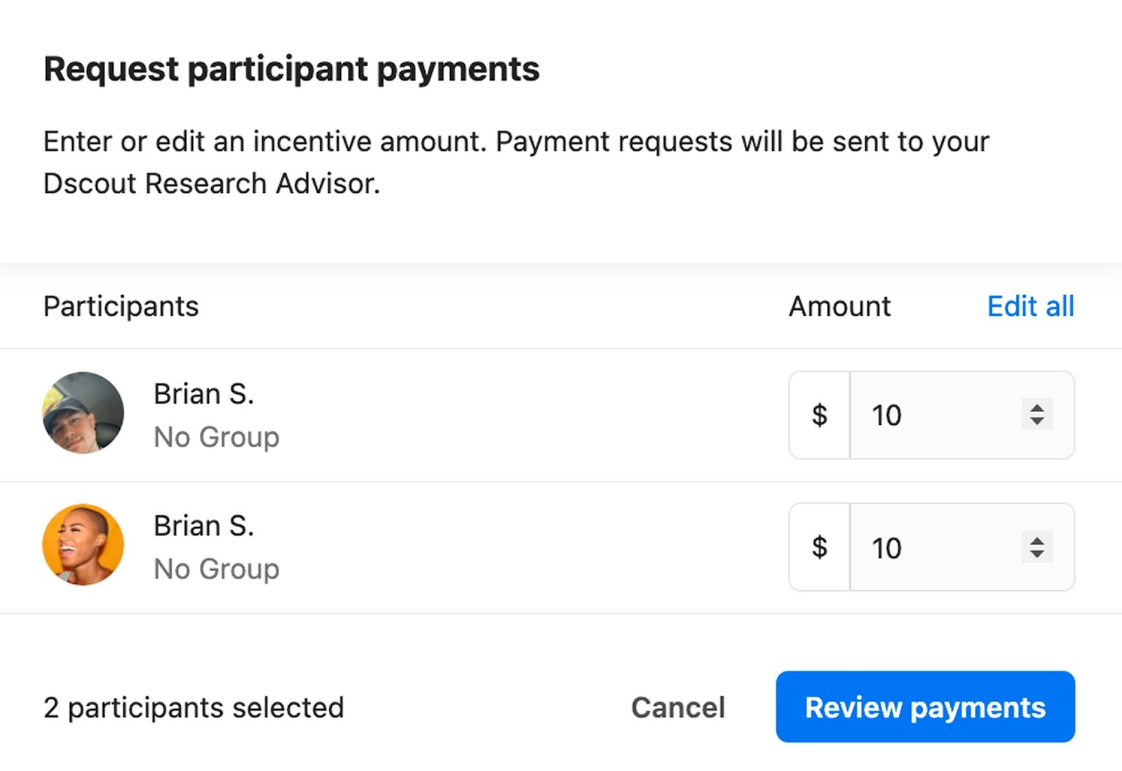 Request payments in an interview study