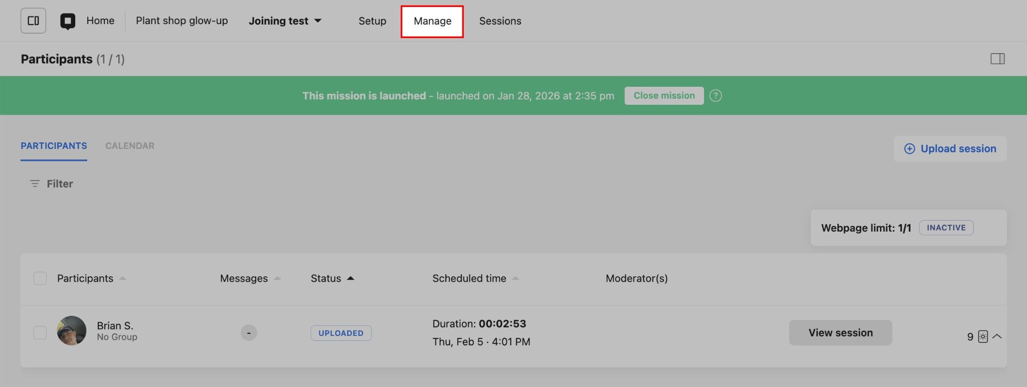 - Navigate to the Manage tab of your study. All participants who have been invited to or signed up for your study are displayed.